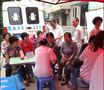 5月31日一大早,西安海容阳光城社区广场上就人头攒动,西安晚报邀请到西安中大耳鼻喉医院走进社区开展公益义诊活动,社区居民排着队,他们一边互相诉说着自己的身体状况,一边等候着中大医院医生为他们排忧解难。