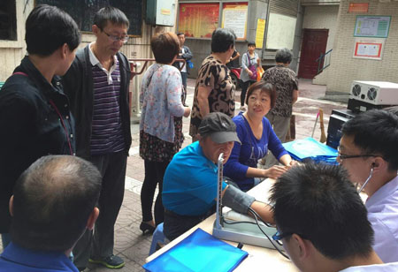 中大医护人员为勤民社区居民测量血压