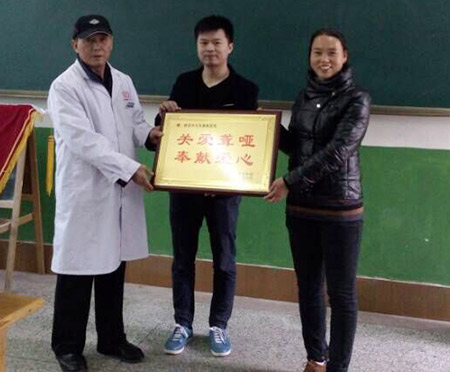 公益活动结束后,学校为表感谢为医院授牌“关爱聋哑,奉献爱心”单位。志愿者代表与孩子们一起合影留念。看到孩子们脸上纯真烂漫的笑容,中大医护人员们都感慨不虚此行。只要简简单单的伸出援手,给予真诚的微笑和一点点帮助,就能温暖这些可爱的折翼天使,守护孩子单纯稚嫩的心灵。