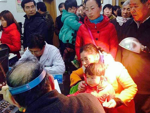 延安洛川县凤栖镇卫生院会诊现场,人群汹涌如潮,会诊室,甚至走廊外早已水泄不通。张全安教授在众多患者的围拥之下,依然表现得耐心细致,冷静严谨,丝毫没被周围环境所影响,而是以眼前患者为重。